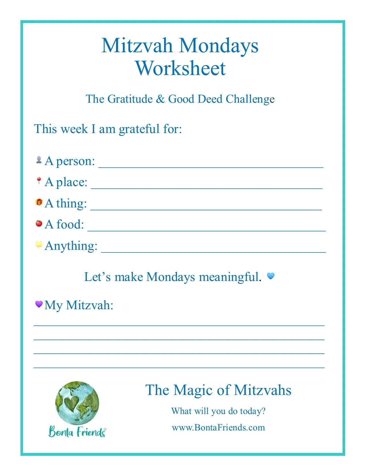 Mitzvah Mondays Worksheet